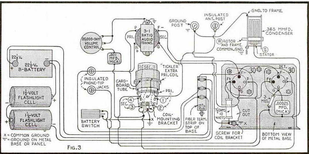 Findige Tüftler suchten deshalb Wege, wie man auch unter den schwierigen Bedingungen eines totalen Stromausfalls mit bescheiden Mitteln Radio hören kann. Da kamen einerseits die seit langem bekannten Detektoren („Crystal Sets“) in Frage, die aber nur in unmittelbarer Nähe des Senders befriedigende Ergebnisse bringen. Andererseits versuchte man, Röhrenempfänger auch ohne die teure „B Battery“ zu betreiben.